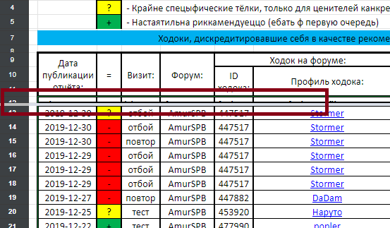 , каторый ф екселе (ис каторава йа загружаю данные) ацуцтвавал: верхняя строчька списка пасищений пачиму-то гоголь-доками "праглатывалась"