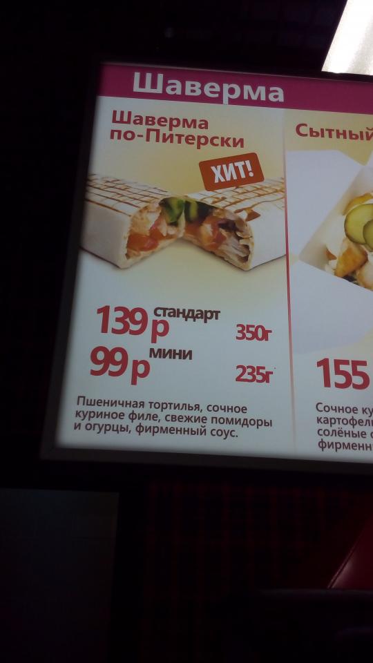 Заинтриговала некая сеть "Шаверма по-питерски", которая представлена во всех уголках города.