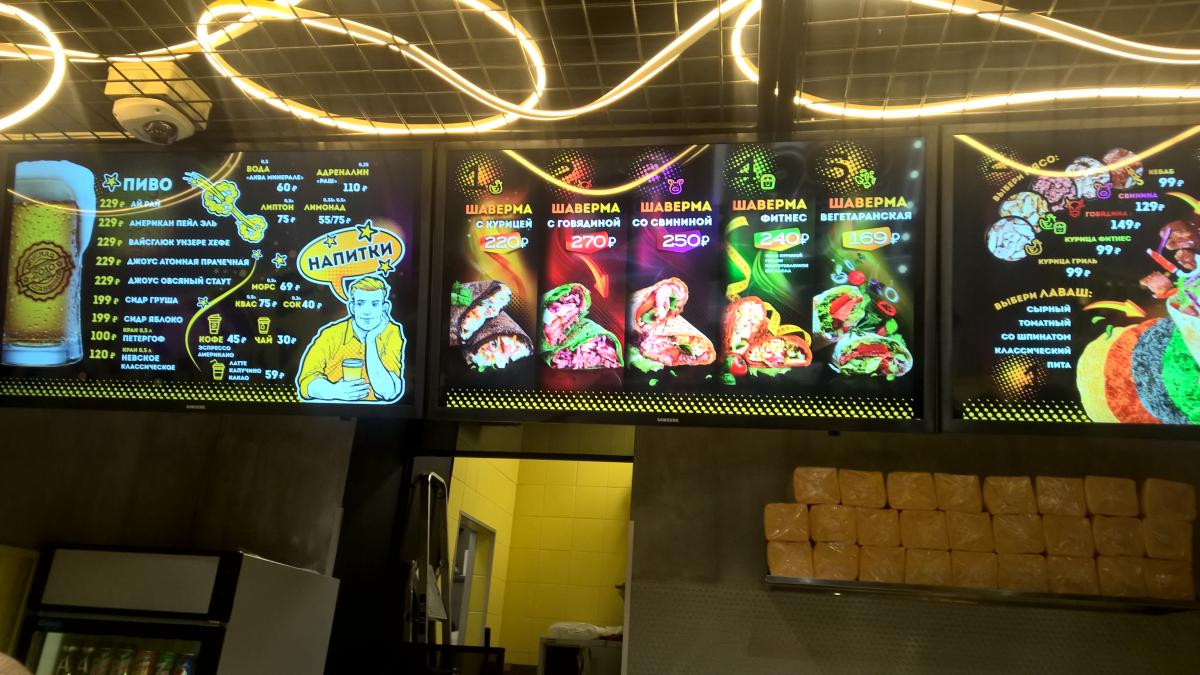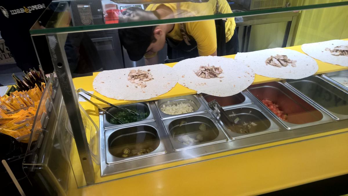 2-й заход утром, народу нет, шаверммастер с кассиром скучаютъ.
