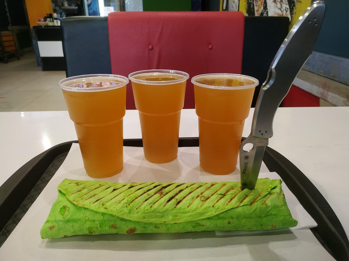 Лично я попробовал греческий гирос и маленькую шаверму. На вкус - отлично.