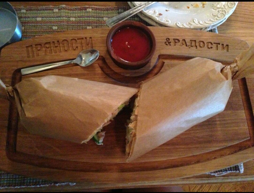 Во время "кулинарной битвы на адской кухне" который проводила одна из салунных сетей города, была сделана первая Амурская шаверма. Ингредиенты были сугубо ограничены тех заданием поединка, поэтому получилось скромненько и без изысков, но начало положено