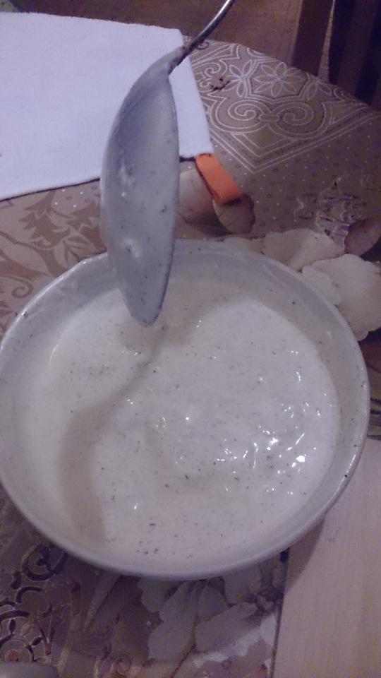 соус: три равные части(майонез, сметана, ряженка), перемешиваем , добавляем перец черный молотый, красный-острый молотый по щепотке, хмели-сунели щепотка, всё перемешать добавить 3-8 зубчиков чеснока давленного(количество зубчиков зависит от желаемой остроты). добавить выжатый сок половины лимона, всё перемешать и дать выстоятся(в идеале пара часов)