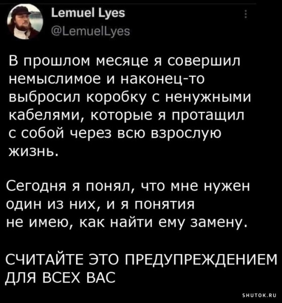 - Тут вот замгенерального сказал, что типа я такой умница-разумница, потому что де институт с отличием окончил. Так вот, дорогие мои долбодятлы - вышака у меня не было ни-ког-да!