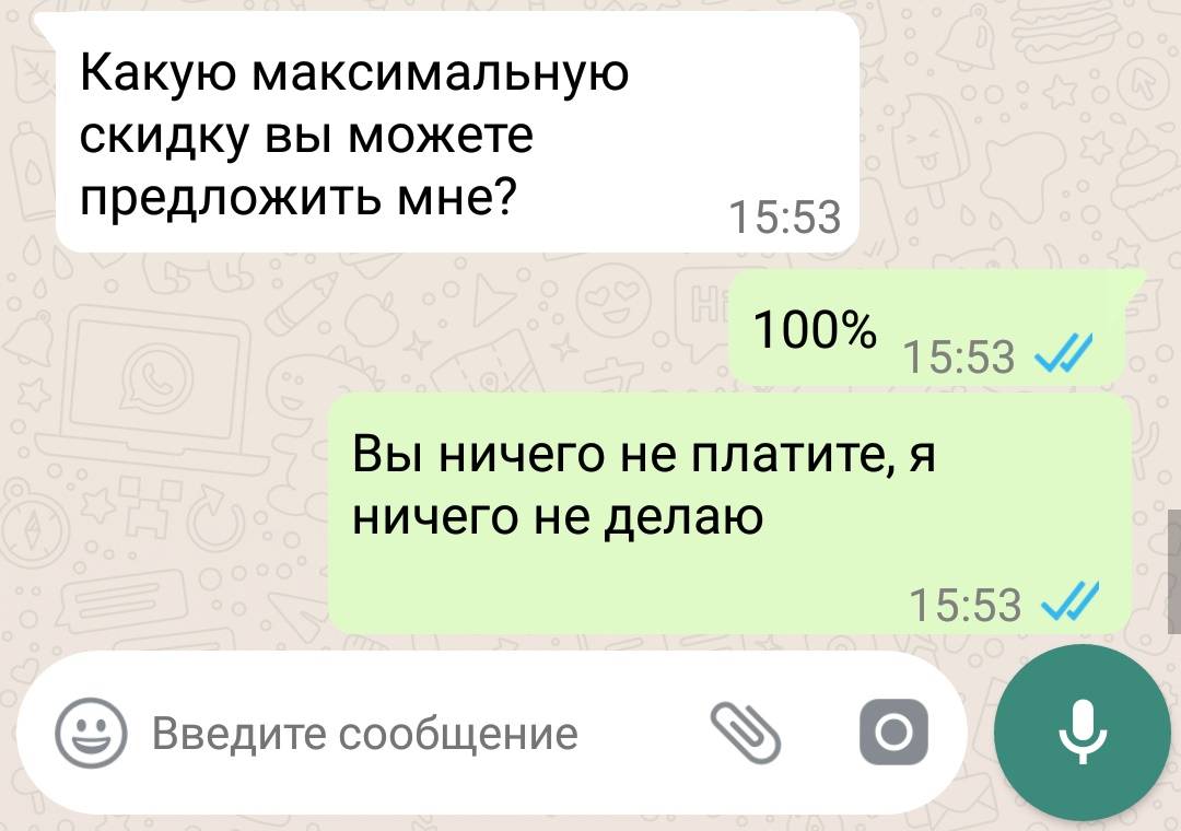 В магазин пришли две девочки (класс восьмой-девятый), сказали, что им надо 40 разных видов конфет, всех по одной штуке. Я подумала, может, они устраивают какой-нибудь конкурс и им нужны конфеты на призы. Помогала им с выбором, взвешивала каждую конфетку по отдельности. В общем, времени и сил ушло на них очень много, но виду я не подала. Сразу, как они ушли, зашла начальница и выписала мне неожиданную премию в размере месячной зарплаты! Говорит, что я первая из работников, которая прошла эту контрольную закупку.
