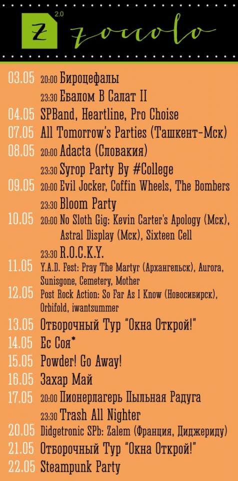 Афиша клуба Zoccolo (это реинкарнация всем известного клуба "Цоколь"):