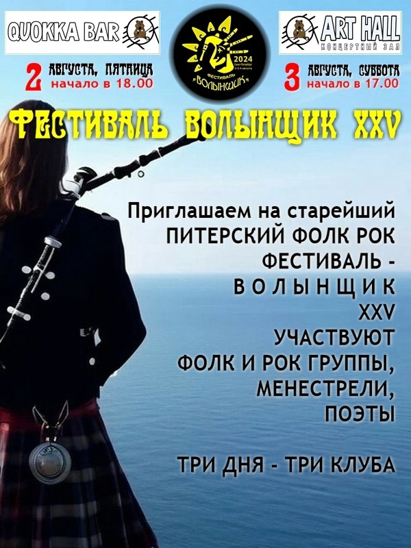 и фолк-фестиваль "Волынщик" в Арт-холле, Квокке и "Сердце":