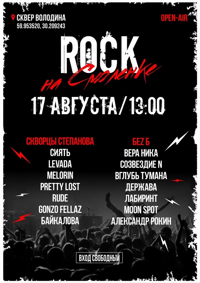 Уже в эту субботу, ещё один летний фест на не знакомой для меня площадке под названием "Сквер Володина", ебеня похлеще "Зелёной сцены", хотя может кому знакомо это место? Тоже примерно 20 минут пешим от метро Приморской, рядом с ЗСД, тем не менее вполне возможно схожу, собственно несколько групп выступало на Revolution Open Air, плюс выступает группа из Гатчины "Беz Б", видел их один раз вживую, как раз таки в Джаггере, были в качестве разогрева, позитивные ребята, есть у них в репертуаре несколько отличных композиций.