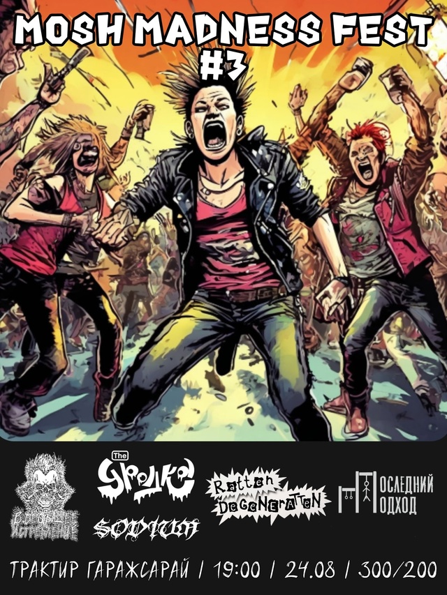 Индастриал, киберэмокор, электророк, акустические вариации, рэпкор, гопкор, авантрэп, шугейз, фолкрок, серф, постгранж, женский хардкоррэп, техно и прочее прочее прочее! Вам мало, тогда фудкорт, тату, рынок мерча, митэндгриты, джэмы, звук, свет, видеошоу и инсталяции, декорации, общение, танцы, живая музыка и все вы психоделические путешественники звуковых галактик и вселенных! Приходите, будет незабываемо и неповторимо!