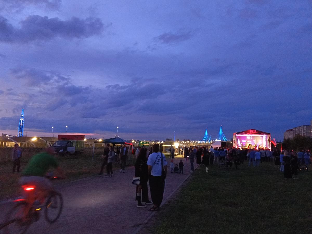 Что то я с этими фестами совсем запарился, был два дня подряд на фестивалях Рок на Смоленске и Революшн Рефир фест, немного потерялся после них) по поводу новой площадки Сквер Володина - довольно удачное место, в сравнении с Зелёной сценой, более подходящее для проведения фестивалей, правда находится она не в самом сквере Володина, а чуть в стороне на поляне между жилым кварталом и ЗСД, когда темнеет вид отличный на светящиеся Лахту и Газпром-арену, алкоголь на площадке не продавали, однако напиться не проблема, так как в жилом квартале в шаговой доступности находится полно кафе и алкомаркетов, а между площадкой и жилым кварталом есть кустики и деревья, где можно спокойно выпить или кого нибудь выипать) публика абсолютно разных возрастов, молоденьких девиц хватало, но и семей с детьми было не мало, звук понравился, выступление групп в целом тоже, группы Лабиринт и Вера Ника видел два дня подряд, первые понравились, на вокале две позитивные, симпотичные девчонки, Вера Нику слушать можно, но на сольник вряд ли решусь, Беz Б вживую видел второй раз, второй раз интереснее, сходил бы на их концерт. Мероприятия проходило при поддержке главы МО Остров Декабристов, не знаю будут ли еще на этой площадке мероприятия, но если анонсируют подобного рода феста, то сходил бы.