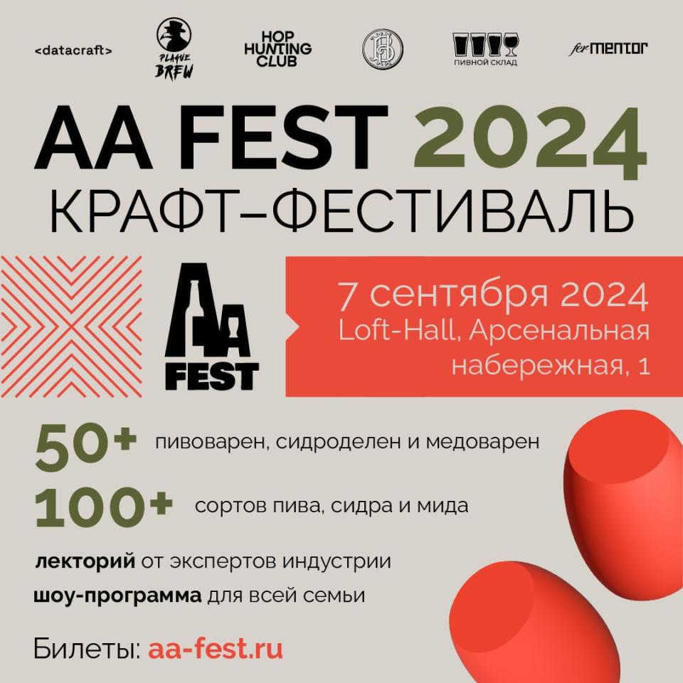 7 сентября в Санкт-Петербурге состоится один из самых ожидаемых ежегодных крафт-фестивалей — AA FEST 2024. Праздник для всех ценителей крафтовых напитков пройдет с 14:00 до 22:00 на ивент-площадке Loft-Hall, расположенной на территории завода «Арсенал» по адресу Арсенальная набережная, 1.