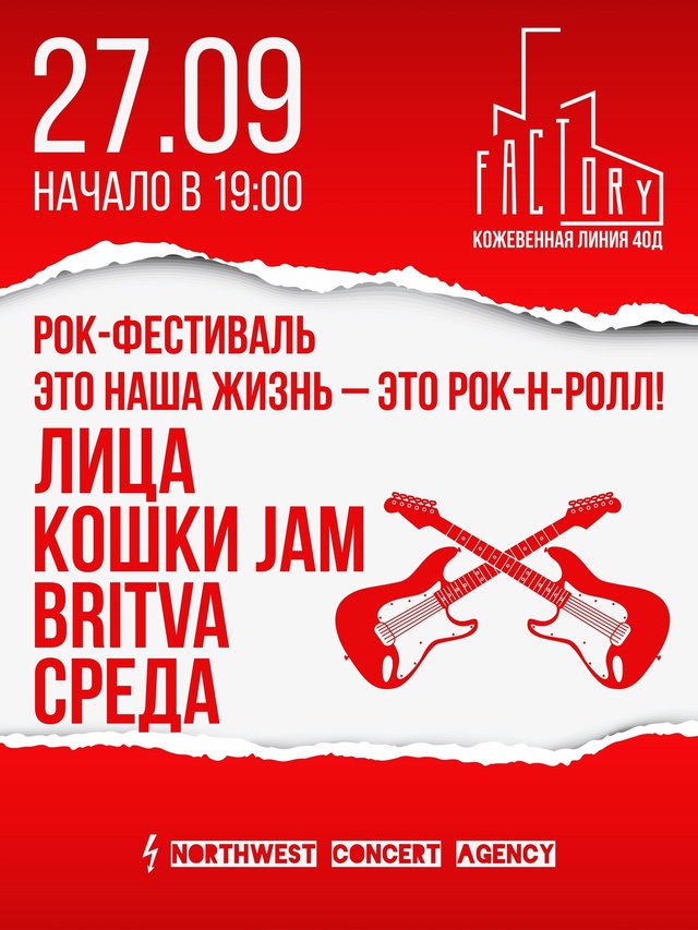 27 сентября в клубе Factory3 рок-фестиваль «Это наша жизнь — это рок-н-ролл!»: https://vk.cc/cAQI15