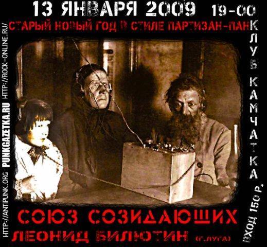 13 января 2009го года в культовом Питерском клубе «Камчатка» состоится празднование начала второго десятилетия 21го века по старому стилю. За 150 рублей на Партизан-Панк вечеринку непременно попадёт любой желающий. Для обладателей трофейного тулупа и партизанской бороды вход бесплатный. Среди поздравляющих замечены: отцы-основатели движения Партизан-Панков «Союз Созидающих» (экс «СавКом»), а также один из достойнейших представителей шестиструнного андеграунда г.Луги – Леонид Билютин.