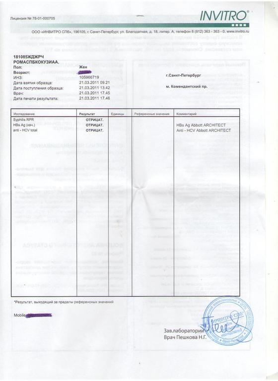 это серьезные обвинения в мой адрес но по результатам анализов от 21 числа не обнаружено у меня ничего серьезного, тем более гонореи, хламидиоза, трихомониаза и могу это доказать на фактах а не на словах.спасибо