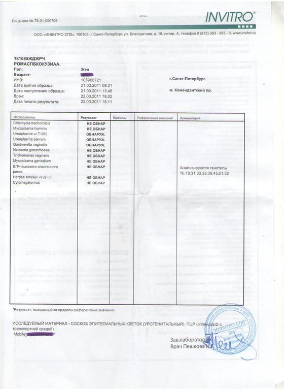 Если это так, ты обследовадась и ничего нет, то приношу извинения. Значит тот ЧЕЛ, который о своих болячках здесь расписался где-то их еще подцепил (а может жена его собственная заразила