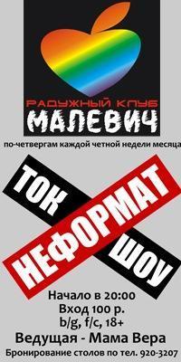 Друзья! Приглашаем вас провести с нами вечер в Радужном клубе МАЛЕВИЧ в компании Мамы Веры на познавательно-развлекательном ток-шоу НЕФОРМАТ! Будем беседовать на любые "неудобные", а порой "запретные" темы, которые интересны и важны! Будем помогать Вам находить единомышленников со схожими интересами! Будем приглашать практиков и экспертов в обсуждаемых вопросах! Рассматривать конкретные истории из жизни.