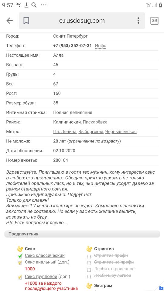 Так же считаю не заслуженным попадание этого персонажа в ахтунг. Да, она уже давно не молода и не красотка, я хрен знает кто вообще может догадаться пойти ее трахать. Да, она бывает дерзкой и по телефону и в момент встречи. Но блять, самый главный параметр это ее умение работать ртом. Я клянусь, никто так не сосет в Спб в эти деньги (по крайней мере у меня), как она. Она прям просит схватить ее за голову и ебать в рот как можно глубже и сильней, при этом шептать "еще, еще". Поэтому я удивлен таким поворотом вещей, на рынке у нее один из лучших продуктов исходя из цены к качеству, а вы ее в ахтунг.