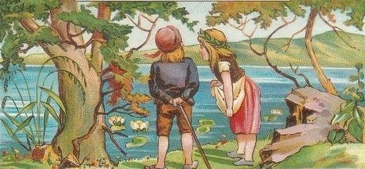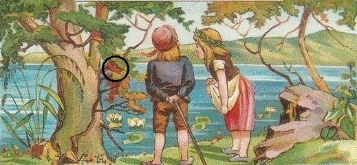 А верхняя картинка маловата. Наверное, девочка, которая справа, смотрит на утку.
