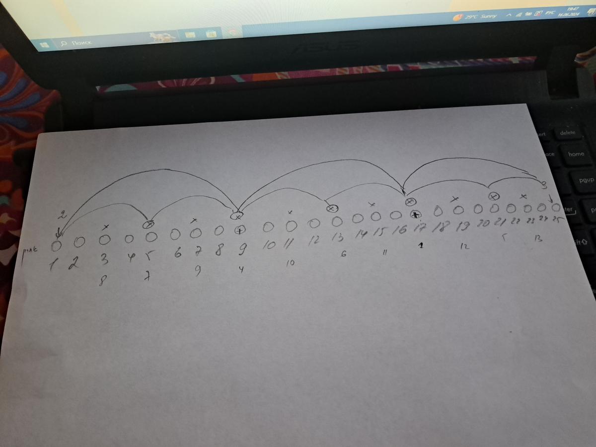За барной стойкой есть 25 мест. У бармена есть возможность определить место, которое займет первый мужЫк.