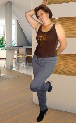 По ТТХ: лет бабульке под полтинник, росту около 165 см. от полу, сиська в районе двоечки, на морду лица – бывает и пострашнее, живот присутствует, но до пуза ещё слегка не дорос.