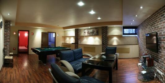 Состоит из нескольких отдельных номеров в основном здании, там же находится и русская парная на дровах, и 4-х отдельно стоящих двухэтажных домиков вокруг бассейна. Этакий небольшой оазис в спальном районе города. Номера отличаются по содержимому. В наличии бильярд (пул), мини бассейн (купель), турецкий хамам, массажный стол, комнаты отдыха, каминный зал.