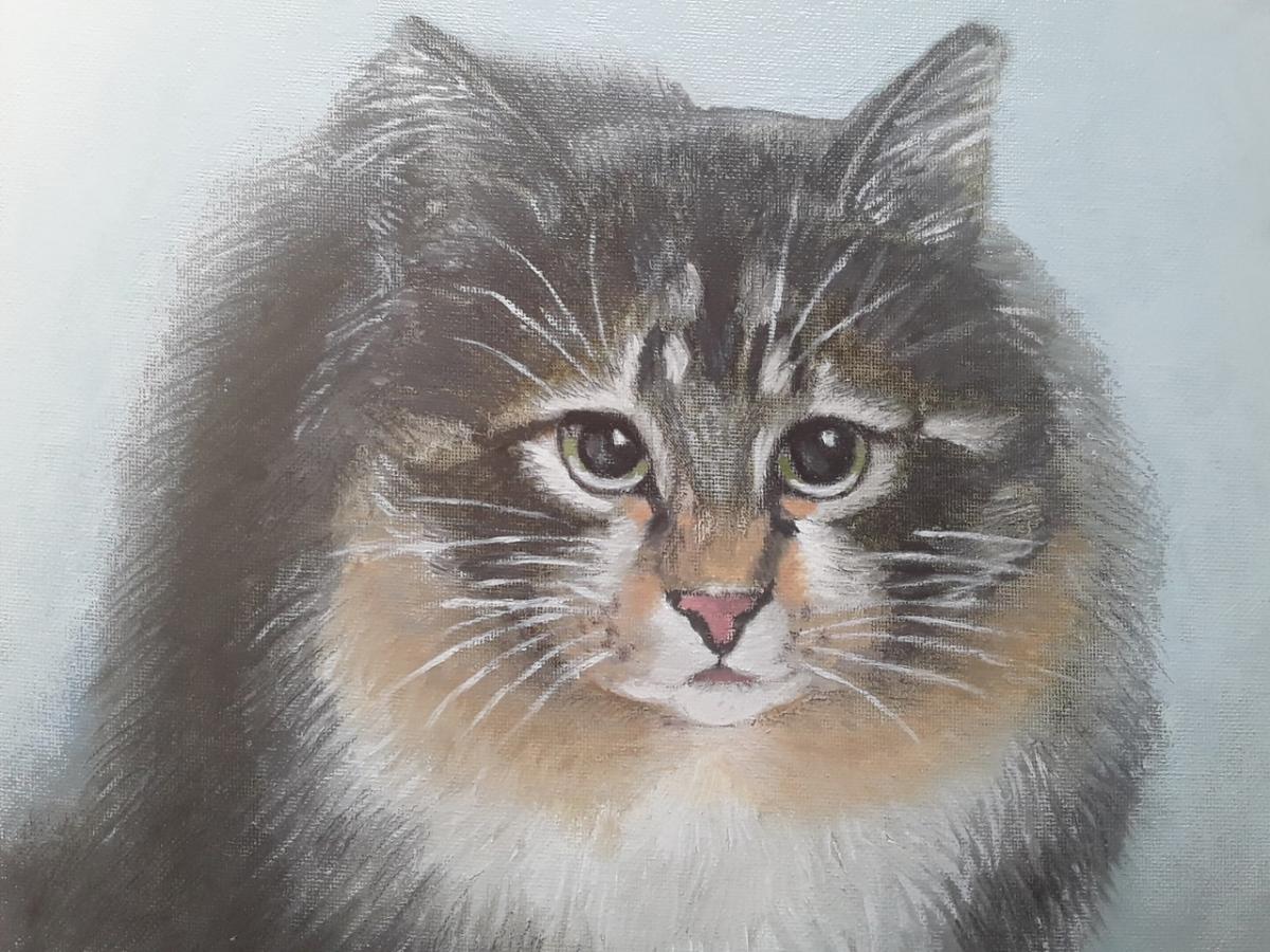 Правда, пес у художника вышел хорошо, а вот с ногами кота он не справился.