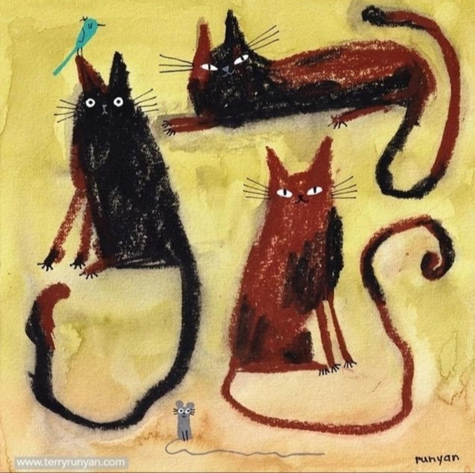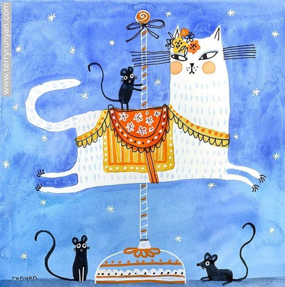 Терри Руньян; художница, живущая в Канзасе, с любовью к кошкам и всем прочим зверям. Сама Terry Runyan признается, что находит вдохновение в наблюдении за двумя котами, которые живут у нее дома.