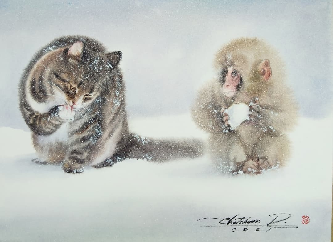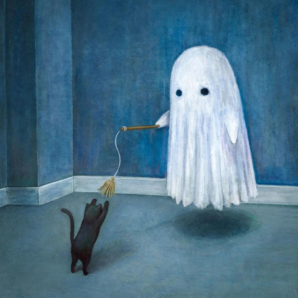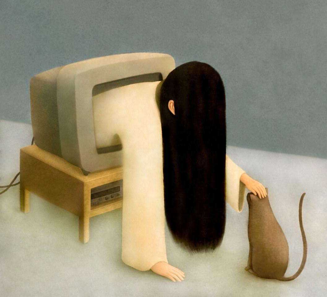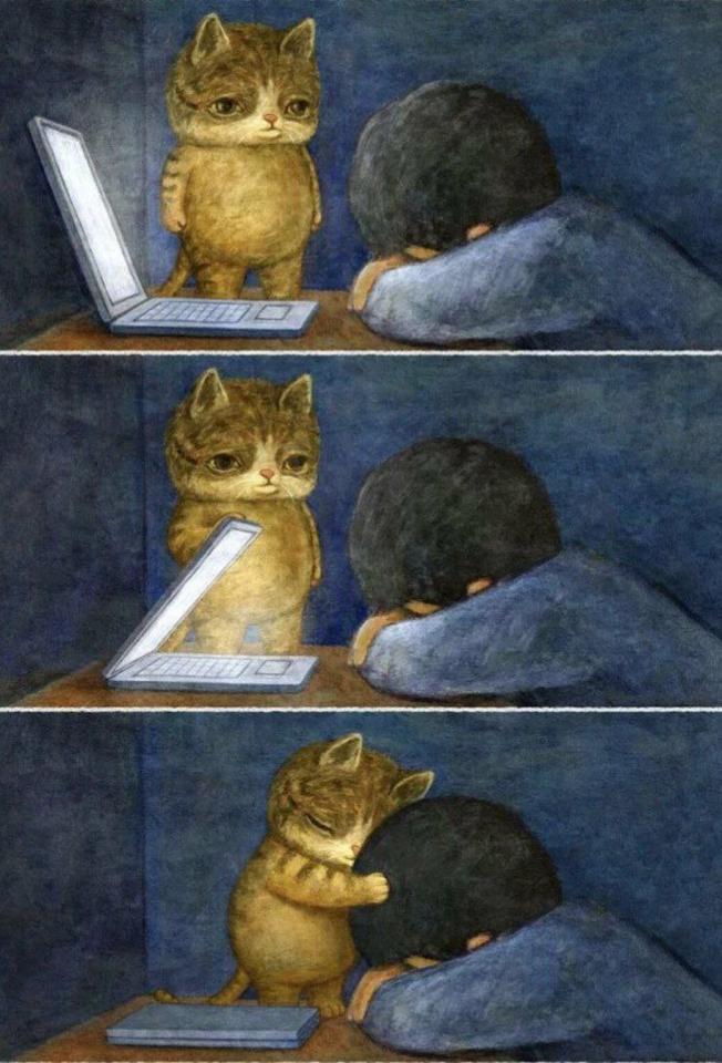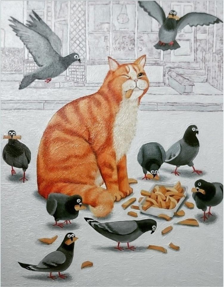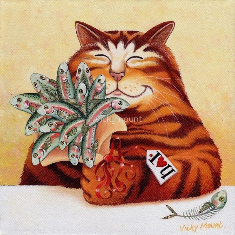 Именно на основе картины Vicky Mount сделано достаточно известное в интернетах изображение кота с попкорном: