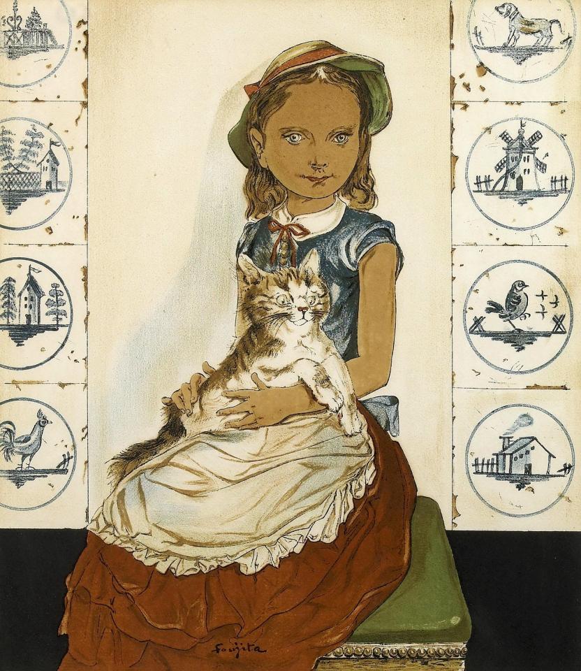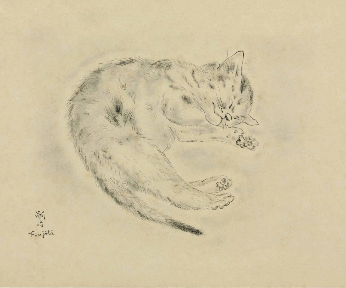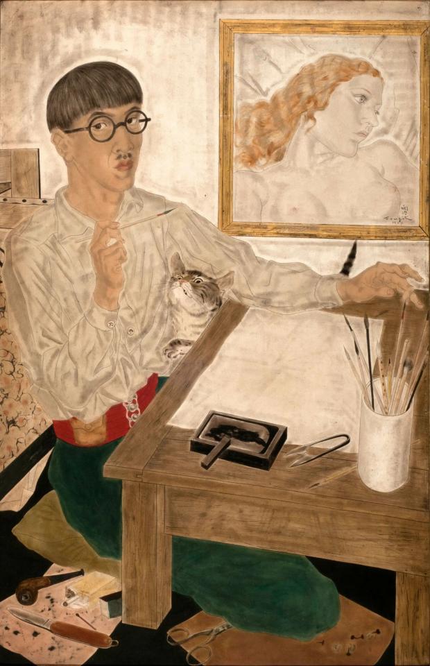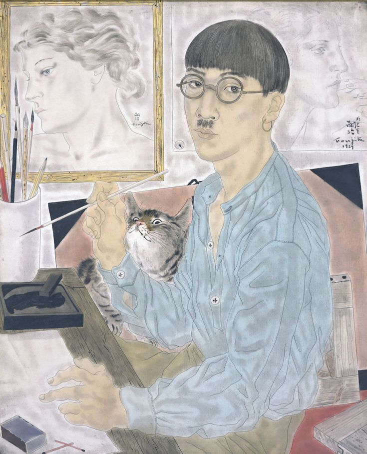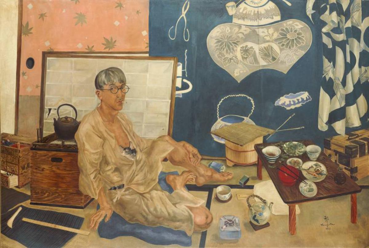 Фудзита был французским художником, в чей образ входил эпатаж и оригинальность. Современники рассказывали, что он носил набедренные повязки, домотканые кимоно, хитоны из портьерных тканей, ожерелья из крупных деревянных бусин.Дополняли образ челка полумесяцем, круглые роговые очки, серьги, браслеты и татуировка в виде часов.