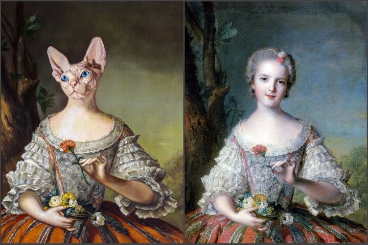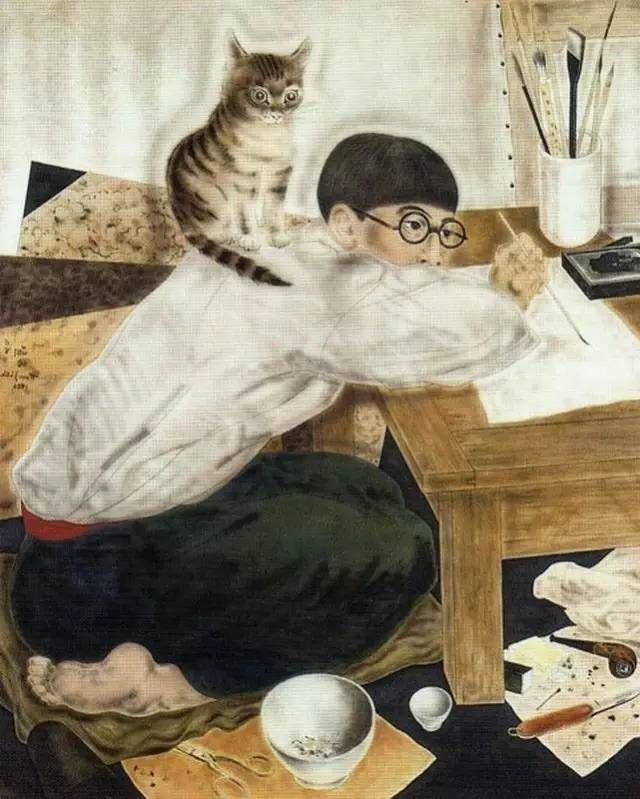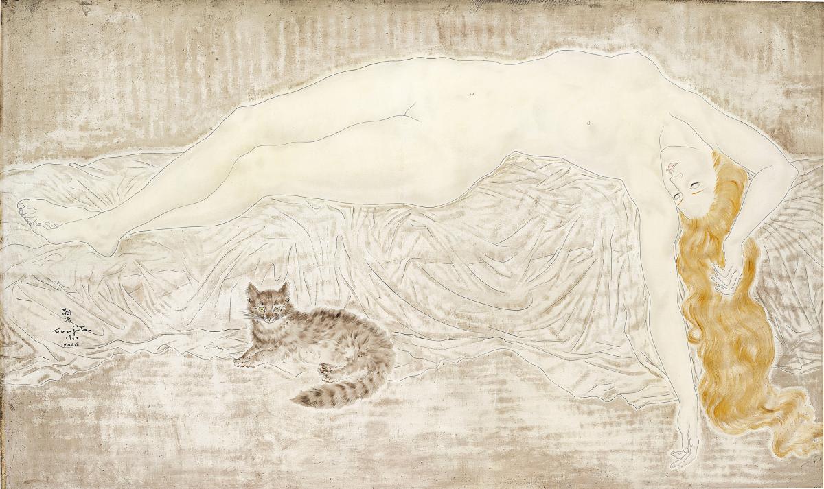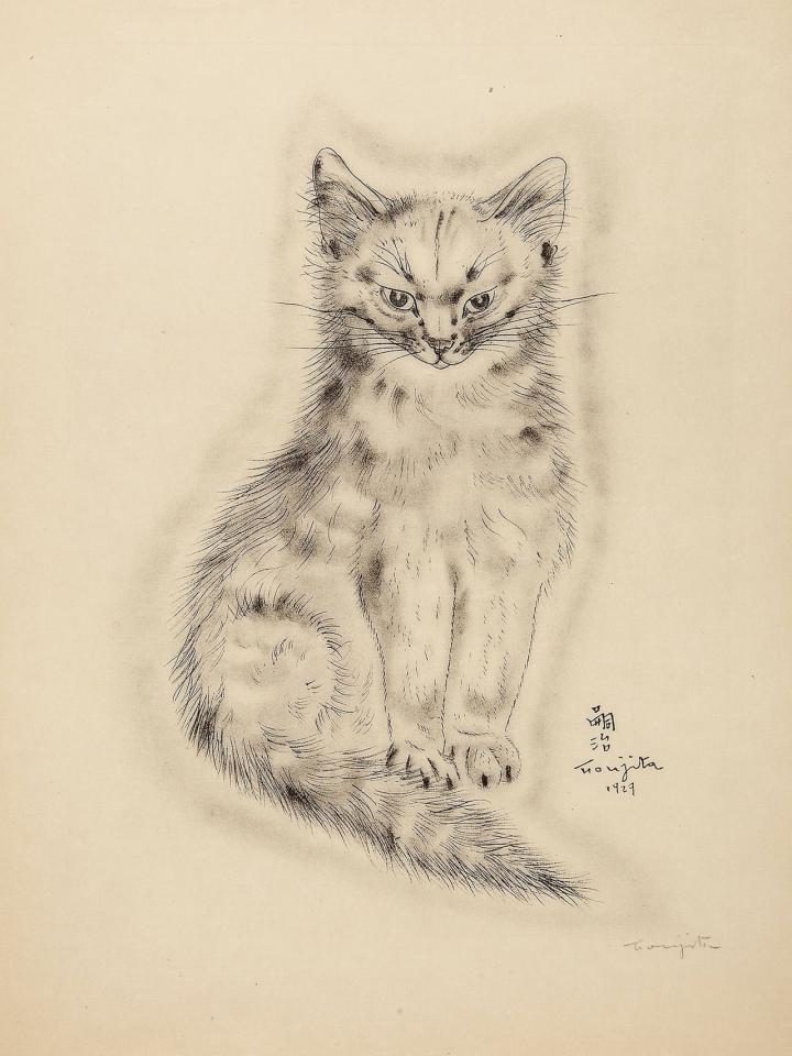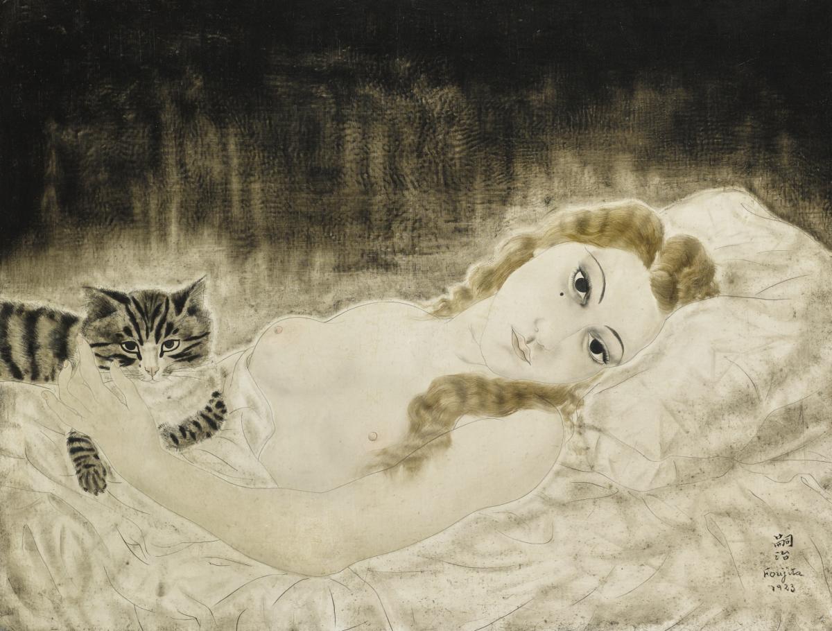 Фудзита был французским художником, в чей образ входил эпатаж и оригинальность. Современники рассказывали, что он носил набедренные повязки, домотканые кимоно, хитоны из портьерных тканей, ожерелья из крупных деревянных бусин.Дополняли образ челка полумесяцем, круглые роговые очки, серьги, браслеты и татуировка в виде часов.