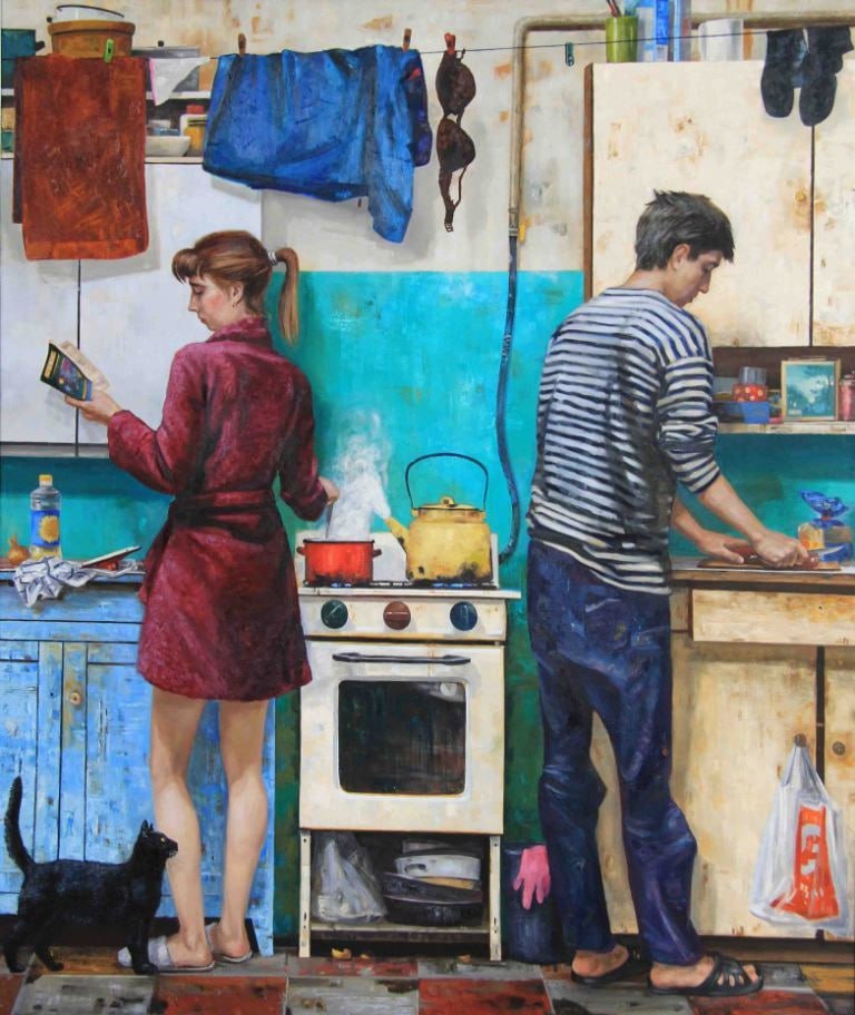 Примерно так выглядела кухня в коммуналке, где я жил в 80-90-х годах. Разве что белье на кухне мы не сушили.