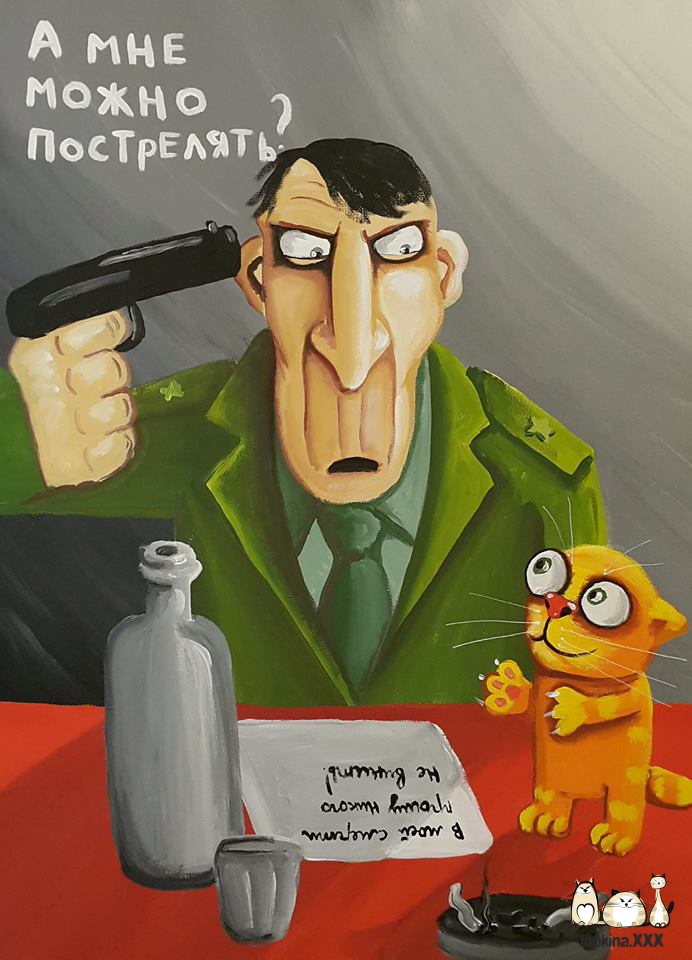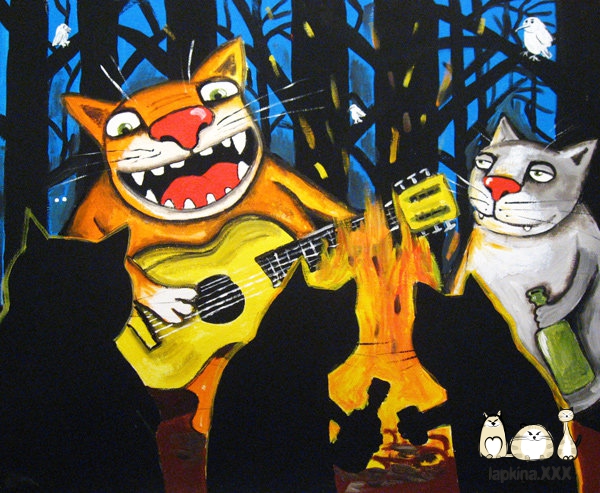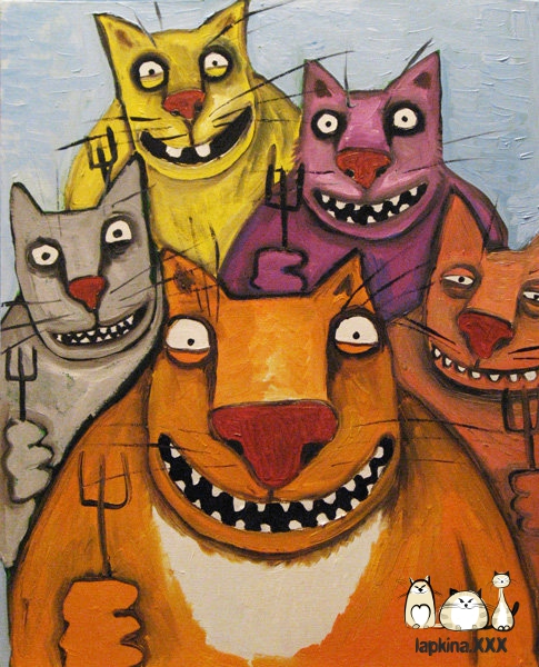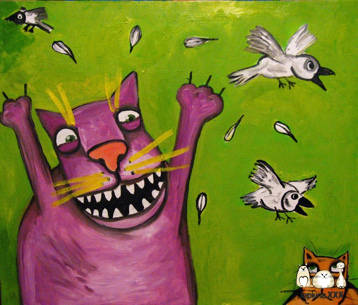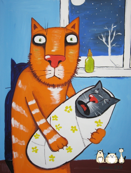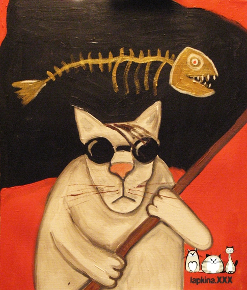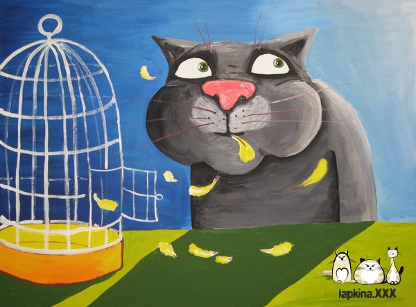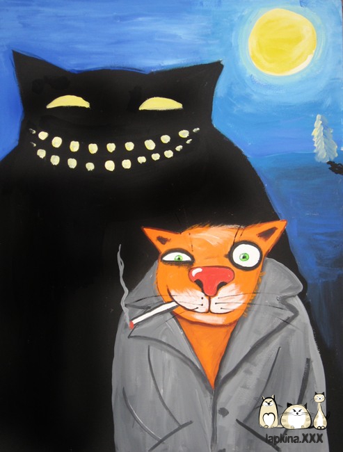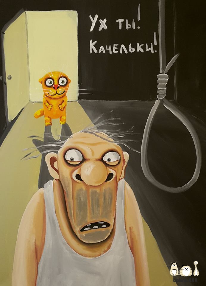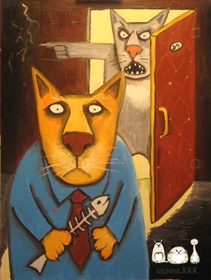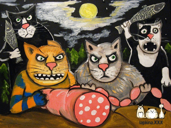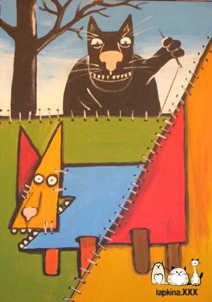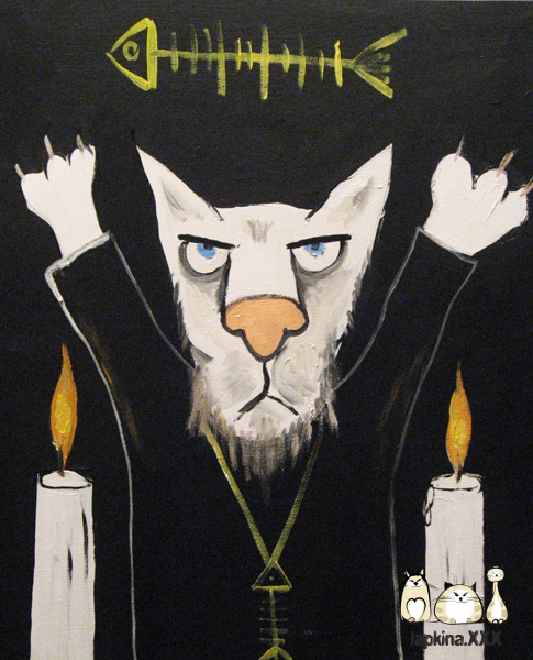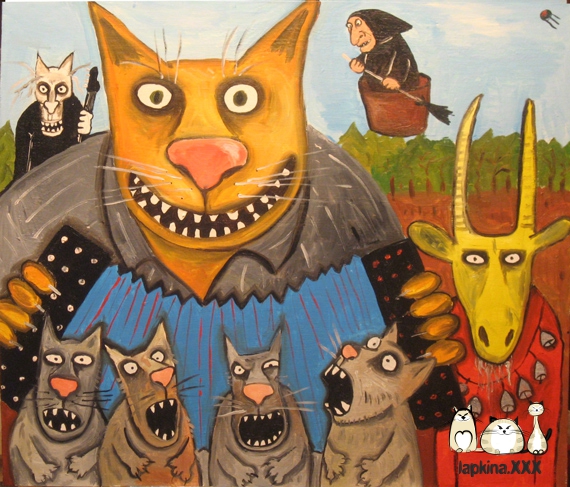 Была ещё картина Фоменко, где кот сидит на кресте - но нигде не могу её найти.