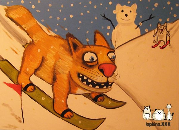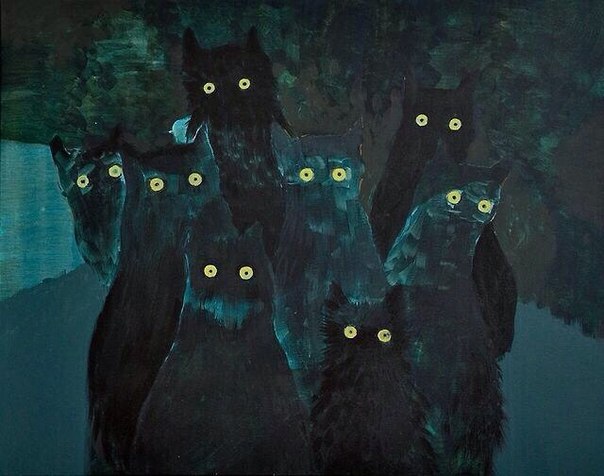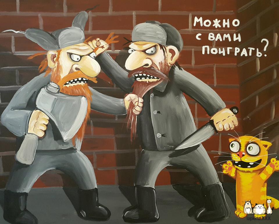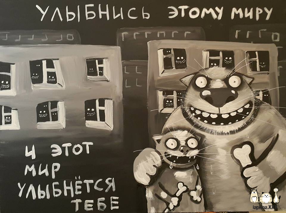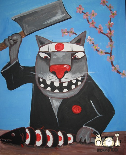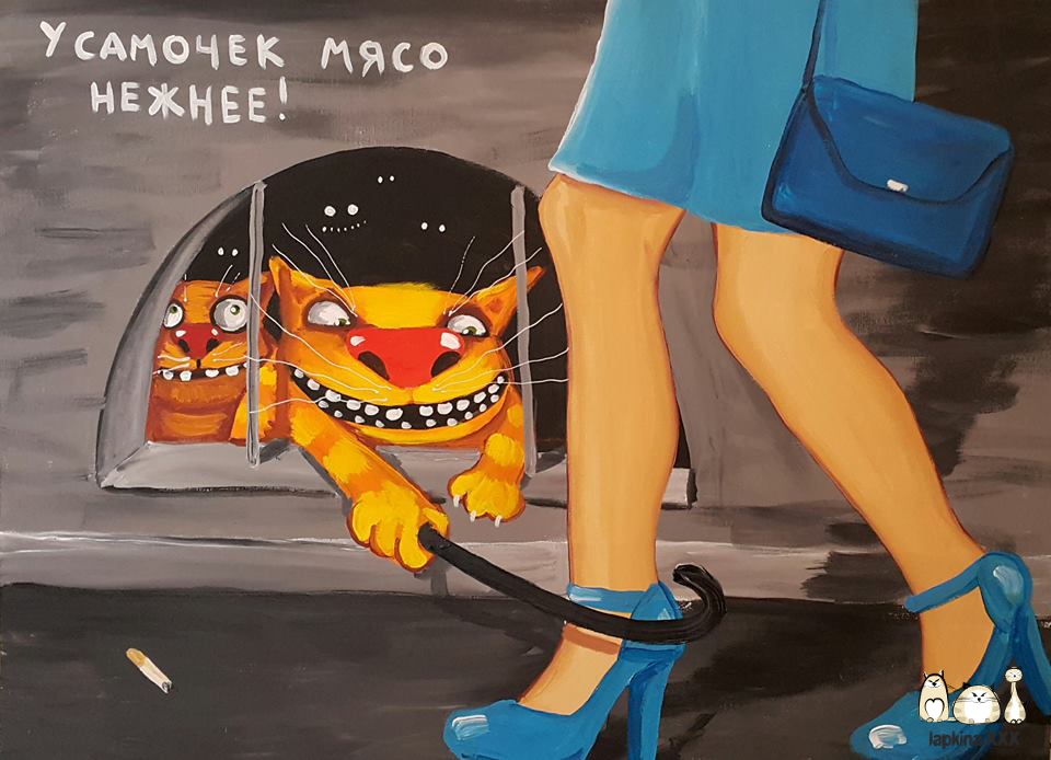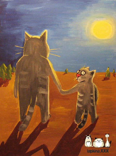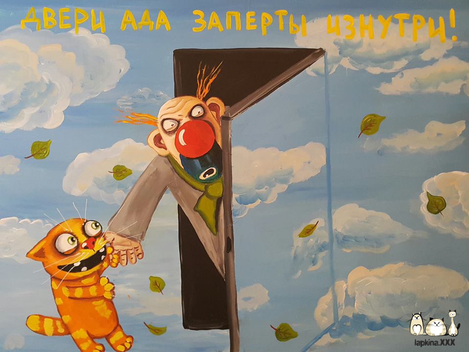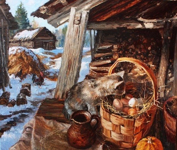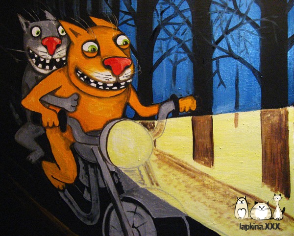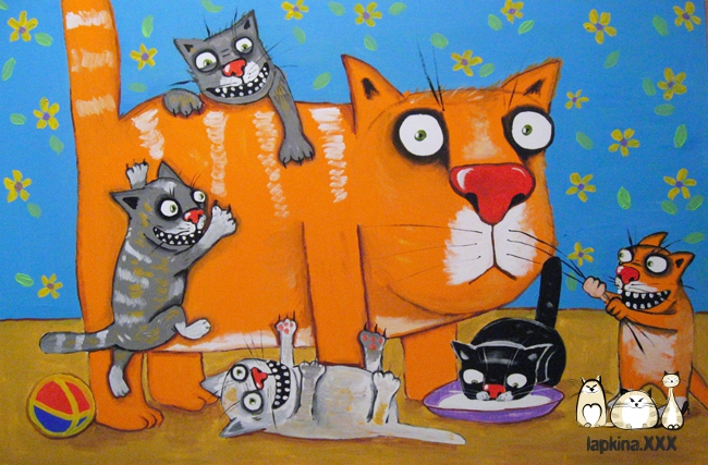 Была ещё картина Фоменко, где кот сидит на кресте - но нигде не могу её найти.