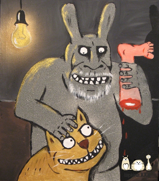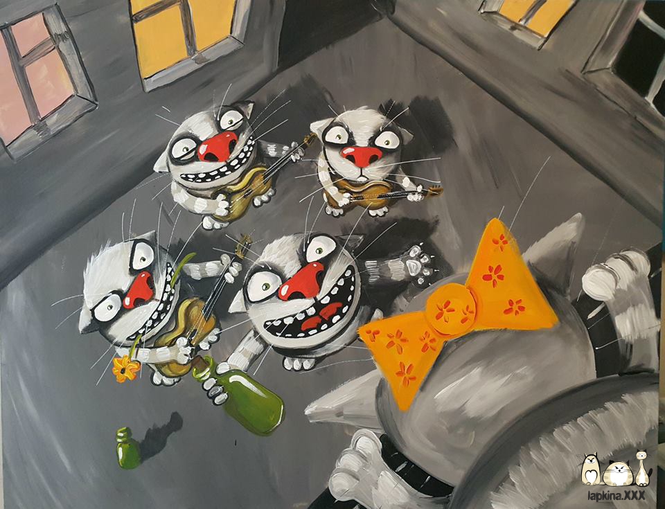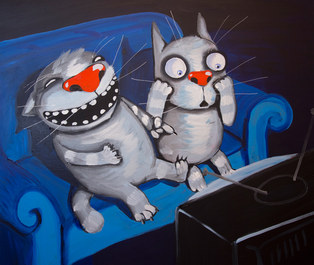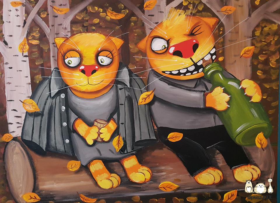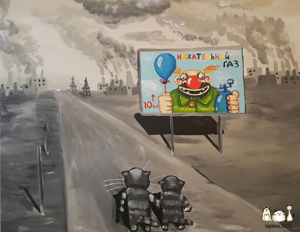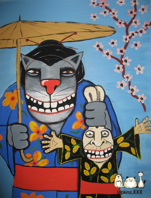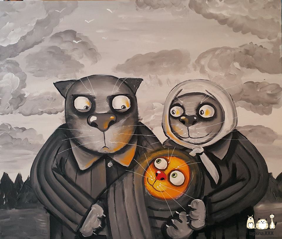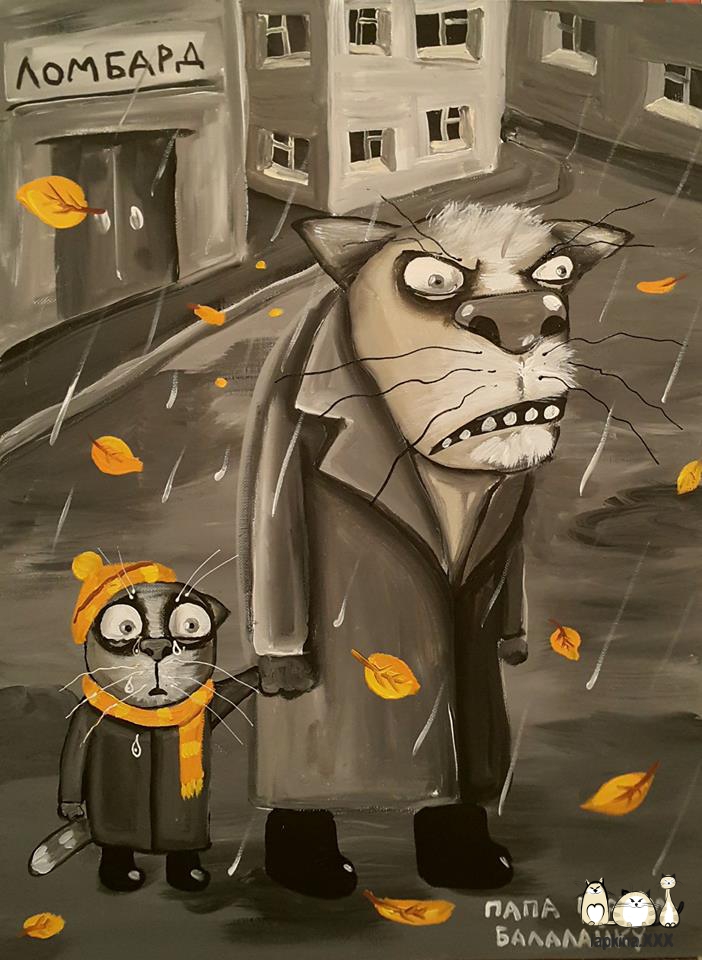 Была ещё картина Фоменко, где кот сидит на кресте - но нигде не могу её найти.