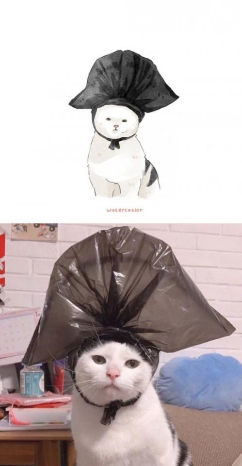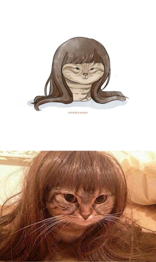 Она берёт из всемирной сети забавные фотографии и мемы с кошками и превращает их в симпатичные цифровые иллюстрации в стиле акварели.