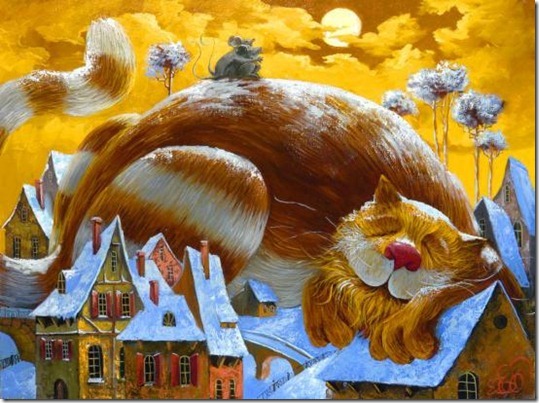 Сегодня видел ее картины. Причем , в кошачьей ее теме присутствует не только петербургская тематика.