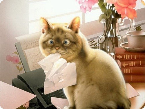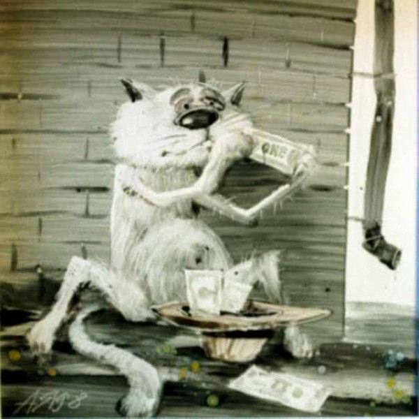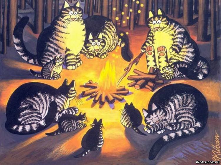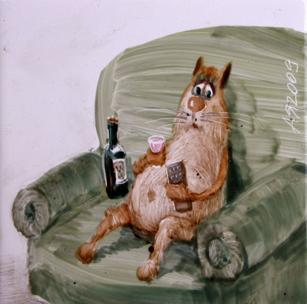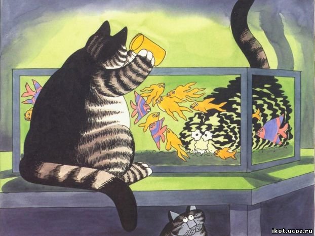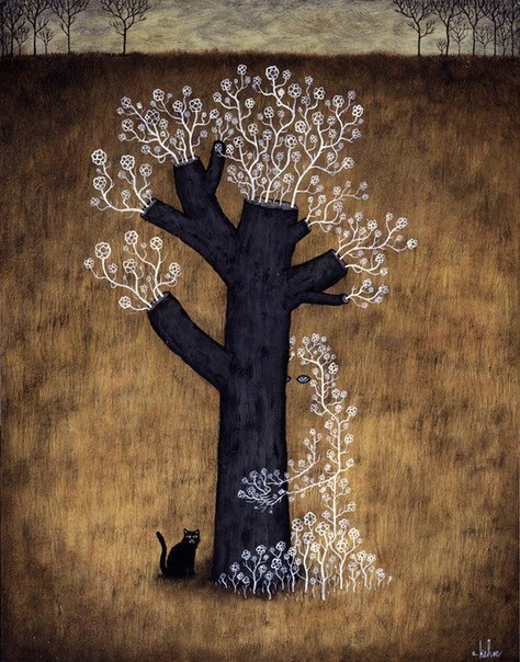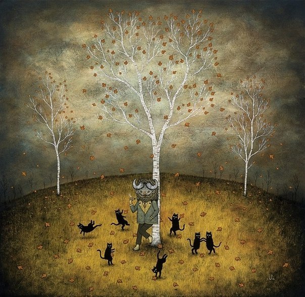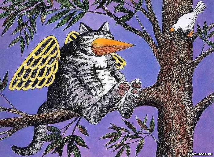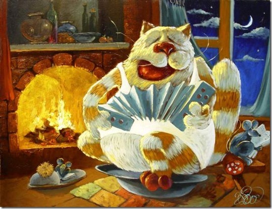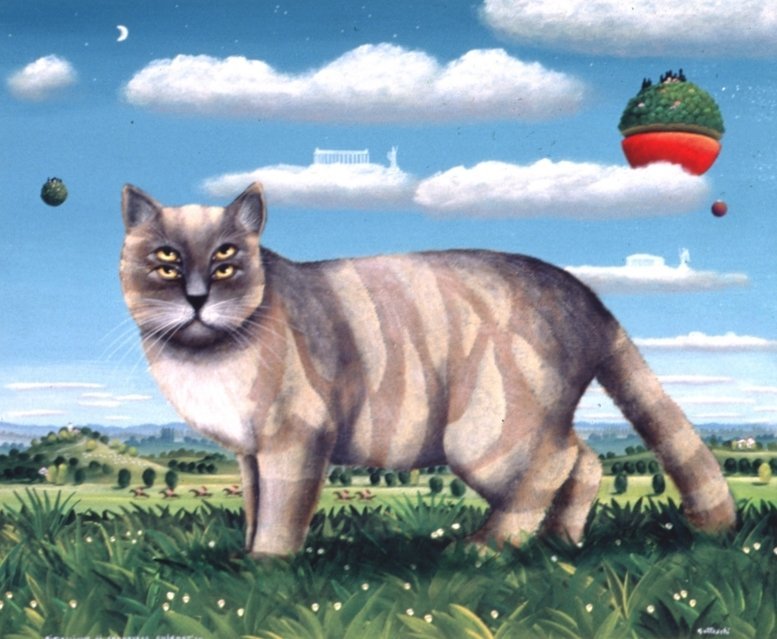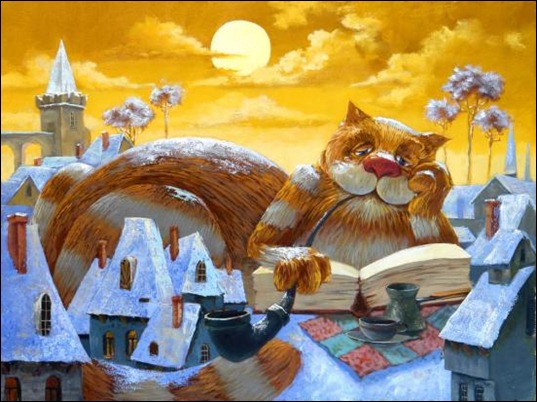 А если таковой им не предоставят, то можно и проводом не побрезговать или на какие-нибудь важные деловые бумаги лечь, чтобы хозяевам неповадно было своевольничать. А как вам коты, покуривающие трубку? Или небольшой, но организованной группкой передвигающиеся по небу с колбасой? Художнику Антону Горцевичу такие коты очень нравятся."