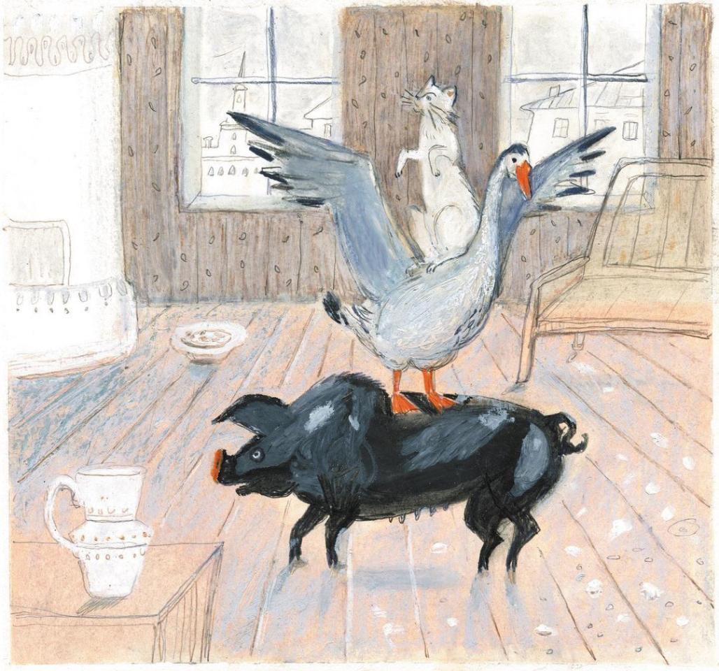 На одной картине и свинья, и гусь, и кошка