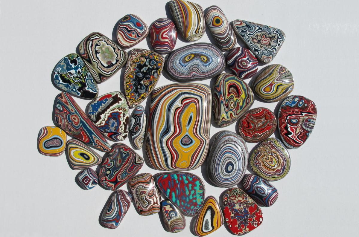 Это не минерал. "Детройтский агат", фактически отходы из покрасочных камер. Красивый материал, но крайне недолговечный.