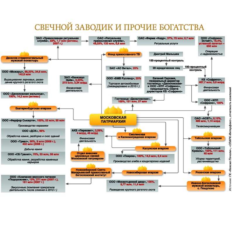 Роскошная гостиница, банки, здания, поставки автомобилей BMW, крупные и малые заводы – вот лишь примерный перечень бизнес-интересов Русской православной церкви (РПЦ). Организация получает 100–150 млн долларов наличными в год в виде пожертвований и иных доходов....