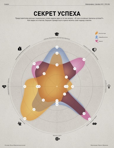 "На схеме вы можете наблюдать результаты опроса людей разного уровня достатка, которые отвечали на важный практический вопрос: в чём заключаются основные причины успеха. Что именно отличает успешных людей от всех остальных.
