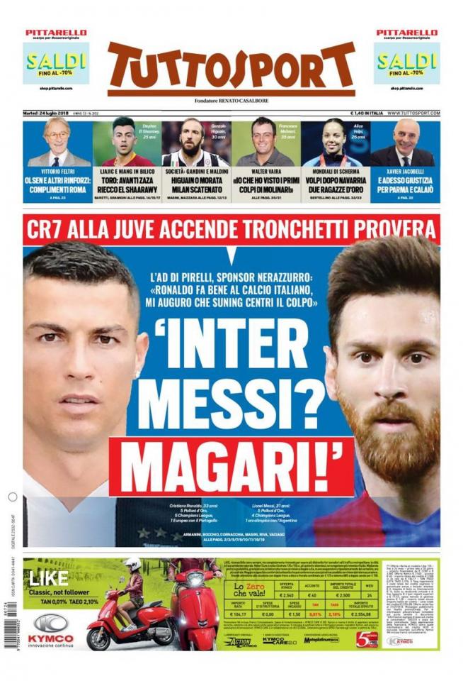 Читаю в электронном виде и сегодня меня статьи улыбнули, в основном про то, что Интер очень хочет и ведёт работу по переходу Месси)
