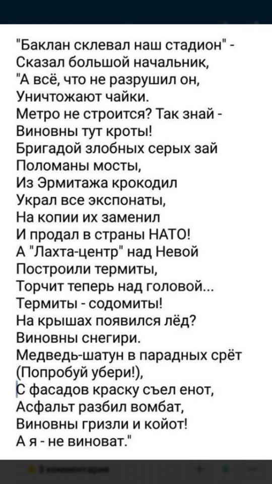 От птички Албина слышу ))) Если такой птичке дать скушать кусочек карбида и направить к стадиону , то эффект будет сто пудов . Под такое дело бабла немеряно можно списать, типа на противовоздушную оборону, на борьбу с бакланским террором и на изменения УК чтобы под хулиганскую статью подвести уже настоящих бакланов )))))) Будущее за бакланами.