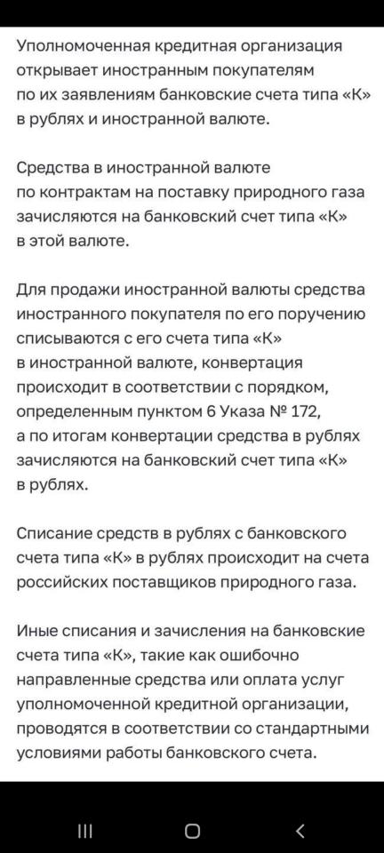 - Где они будут брать рубли? Продавать им рубли за евры, как мне представляется ни кто не будет. Ибо евры, находящиеся на коррсчетах в гейропах так же могут быть заблокированы и спизжены, а рубли уже за газ уйдут в оплату, и газ уже будет поставлен. То есть нашим опять останется хуй. Или я неправильно схему представляю?