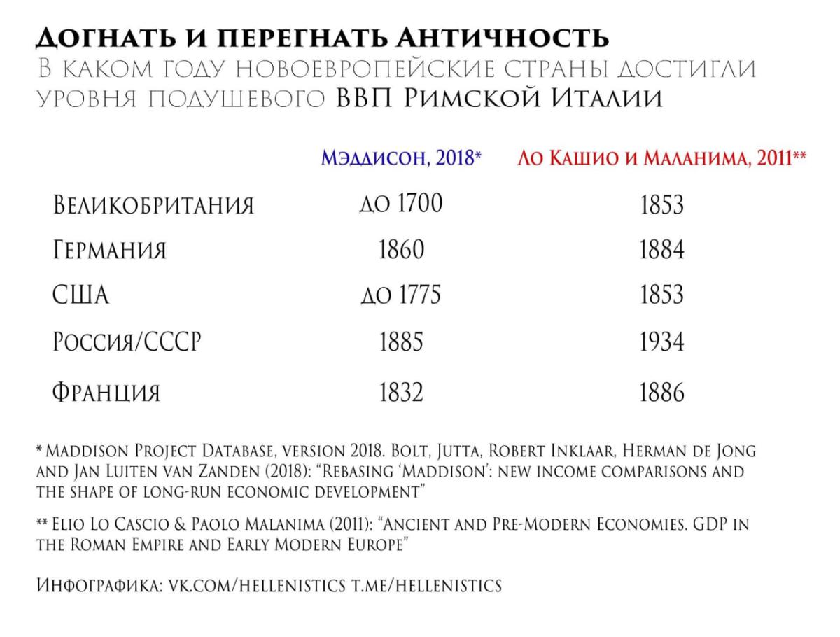 То есть с падения Западной Римской империи было примерно 500 лет полного развала и набегов полудиких арабов и совсем диких варягов, печенегов, аваров и т.п. Потом лет 500 средневековой стабильности. И только с 15 века (эпоха Возрождения) пошел постепенный рост, который лет за 400 позволил догнать и перегнать Древний Рим.