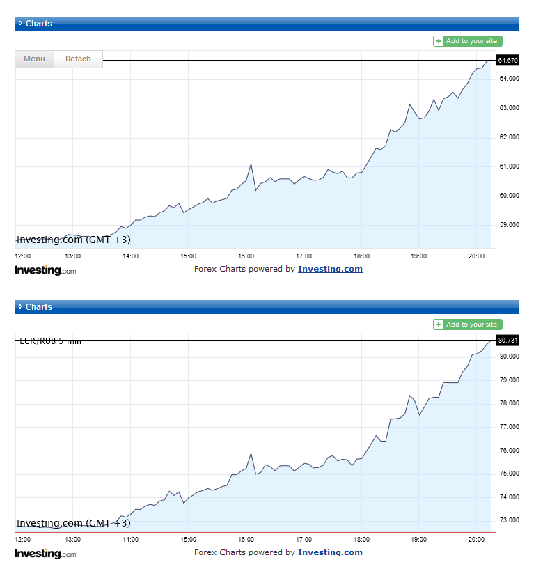 Я считаю, что в феврале – марте рубль должен вернуться к равновесному курсу 33 рубля за доллар. Я серьезно так считаю! Лично я свои деньги не побежала никуда перекладывать по 35 рублей – это безумие! И мне очень жалко людей, которые покупают доллар за 35 рублей, потому что вероятность, что они потеряют свои деньги, – большая. Я знаю, что в панику трудно противостоять коллективному бессознательному. Но если у вас суммы не безумно большие – вам точно надо избегать любых метаний. А если суммы большие – надо включить мозг и подумать, не поздно ли уже менять деньги. Потому что вероятность того, что рубль подорожает, с моей точки зрения, гораздо выше, чем, что он продолжит дешеветь.