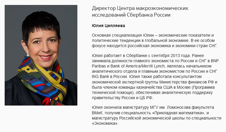 Юлия Цепляева, директор Центра макроэкономических исследований Сбербанка