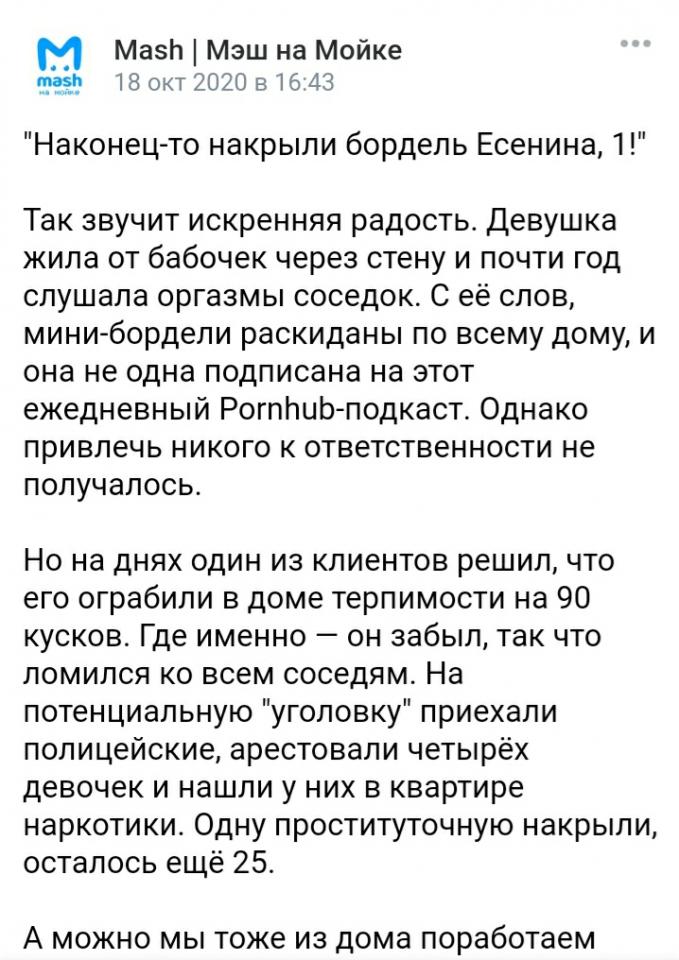 Отойдя немного от дома, мне начала звонить диспетчер с ворохом вопросов: "Что это вы там делали?", "Где я медленно отвечала?" и оказывается, я чуть ли не на секс там претендовал с девушкой! Вот это да... Вот так лгать - это надо уметь!