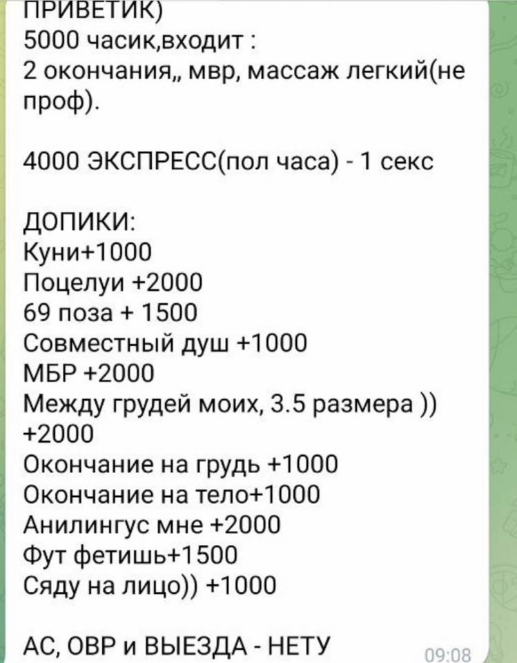Незамедлительно отписываюсь в тг с просьбой встретиться , приходит голосовое от девушки с сексуальным голосом ,где спрашивает возраст и национальность , ну и само собой новые клиенты по предоплате.