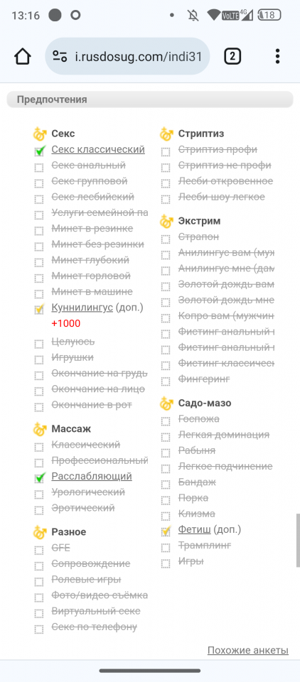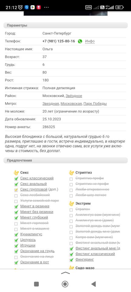 Суть в чем: была одна дева, ну очень мне понравилась, но видимо ушла из индустрии. Тк пропала со всех ресурсов. Но, поиск навел меня на один сайт (да простят меня админы) секс-менеджер инфо, на котором я нашел ту кого надо. Написал в их телегу, с указанием конкретной анкеты. В ответ аудио, что девушка на каникулах но есть куча других. Мне посыпались фото, на что я отвечаю "готов платить, найдите ту". В ответ "она на каникулах". Спустя несколько недель, вновь пишу: в ответ "девушка не работает". Спрашиваю: "А у вас на сайте и неактуальные анкеты есть". В ответ тишина.
