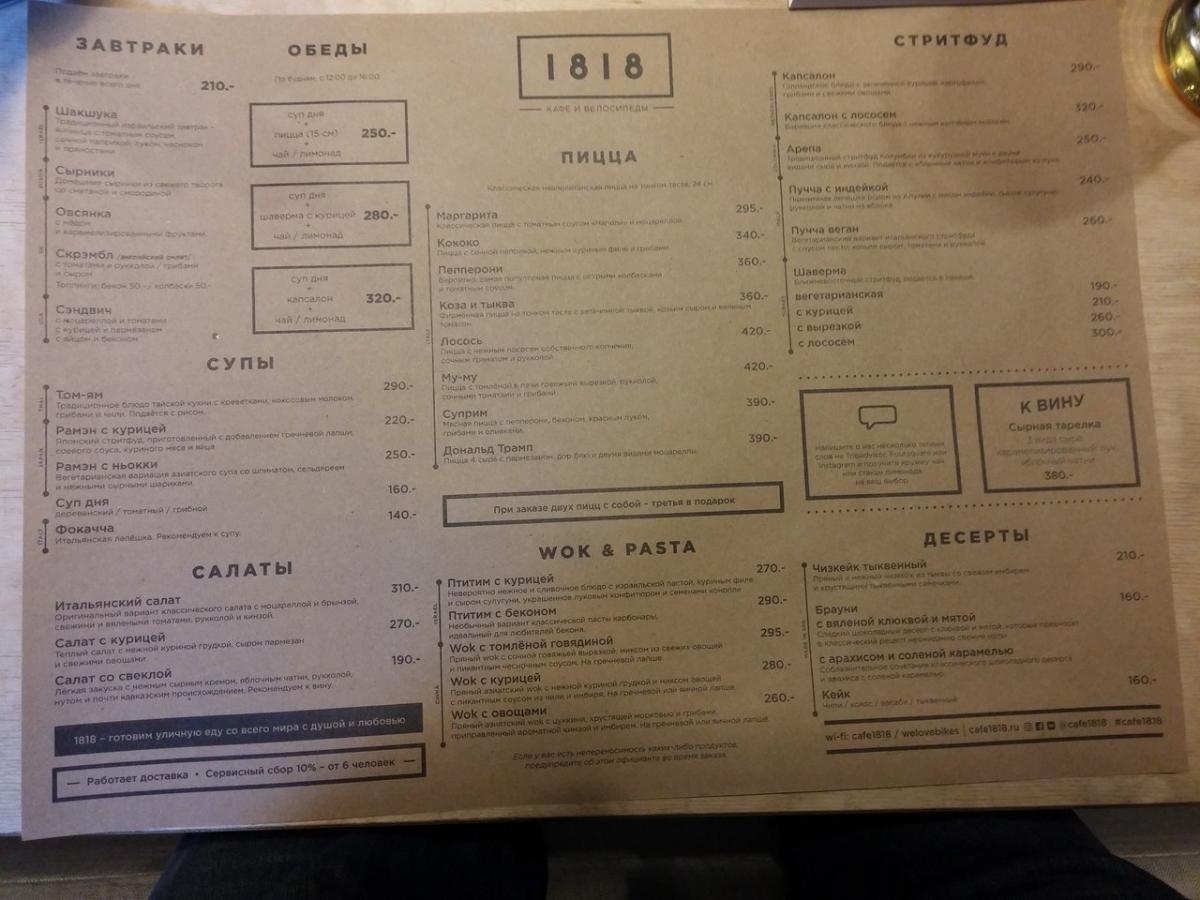Меню производит несколько странное впечатление. Оно небольшое, причем собраны расхожие блюда из разных кухонь. Тут и салат Цезарь, и бургеры, и шаверма, и суши, и вок, и шашлык... причем не все соответствует привычному вкусу соответствующих блюд. Впрочем, все, что ели, было неплохо. Замечу, что готовили быстро, что невольно навевает мысли о микроволновке...